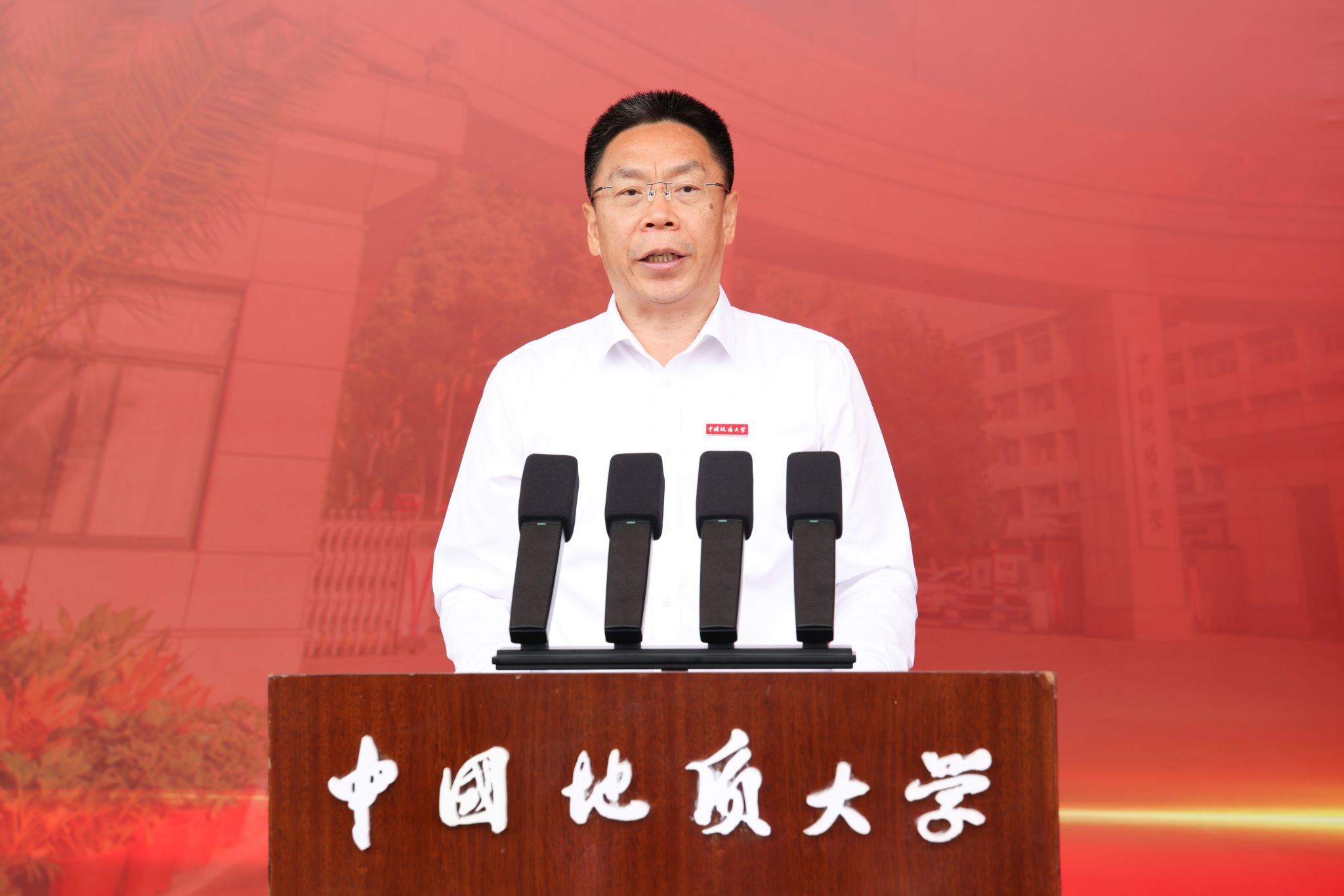 校长李建威作了题为《矢志报国向未来》的讲话。他说,建校73年来,学校为党育人为国育才的初心不改,地质报国科技强国的使命担当不改,矢志成为地球科学领域世界一流大学的追求不改。学校的奋斗历程和取得的辉煌办学成就,是矢志报国的生动体现,是熔铸于校训精神、南迁办学精神、攀登精神、摇篮精神的价值追求,是几代地大人赤诚报国的精神底色。